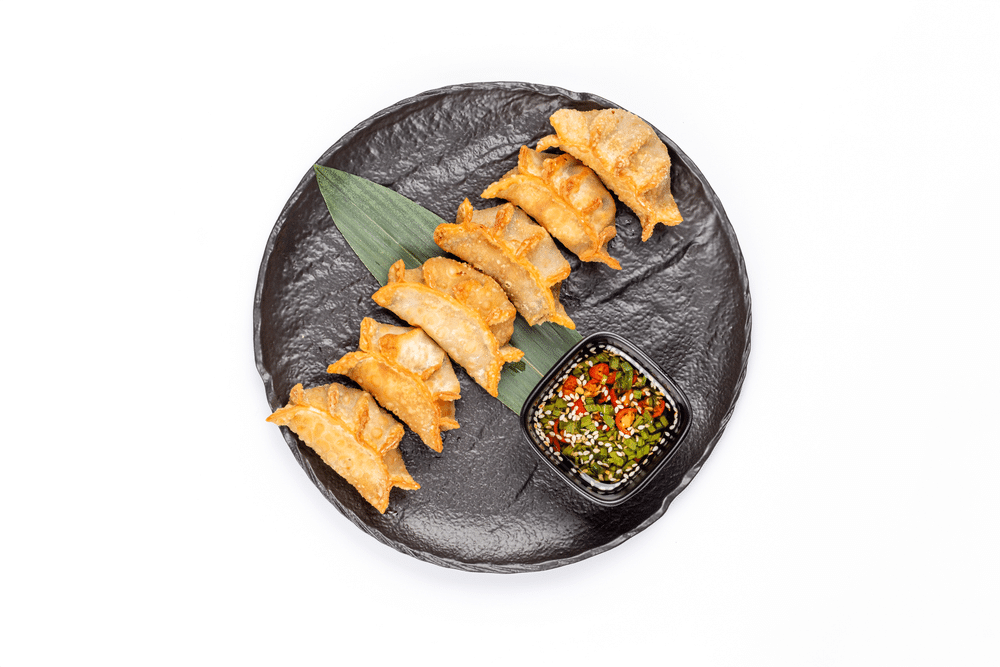 Фарш говядина, пекинская капуста, зеленый лук, репчатый лук обжаривается и подается с азиатским соусом и листом бамбука