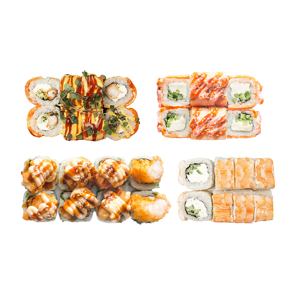 *Только на доставку и самовывоз Поцелуй гейши,киллер ролл,фила с креветкой,фила эби 4 соевых соуса,2 васаби,2 имбиря