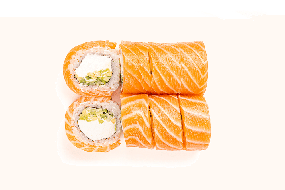 Норвежский лосось, авокадо, огурец , сыр cremette и кунжут (1 порция = 8 шт)