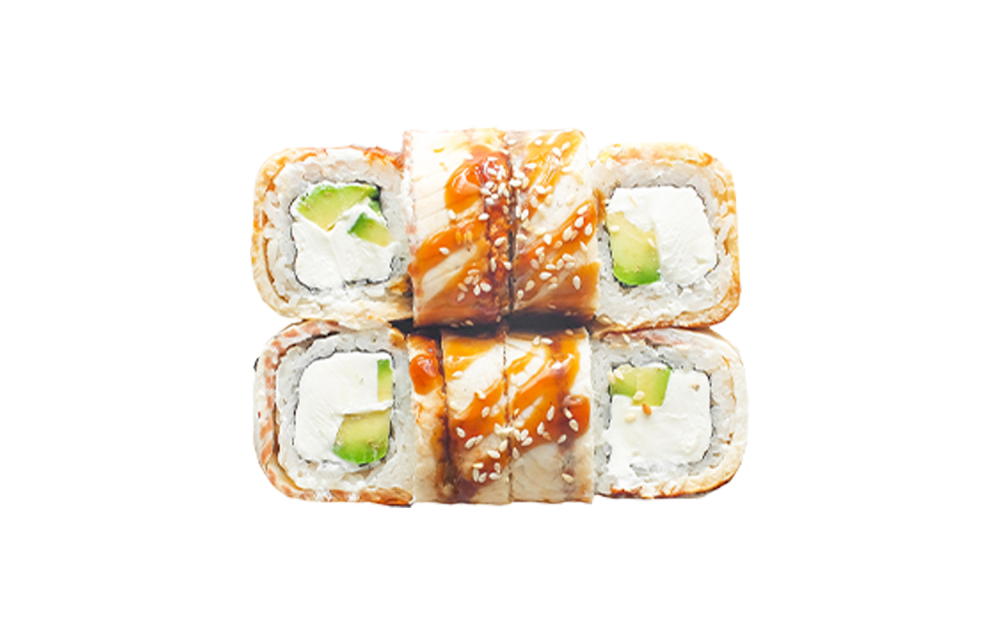 *Только на доставку и самовывоз Копченый угорь, сыр cremette и авокадо (1 порция = 8 шт)
