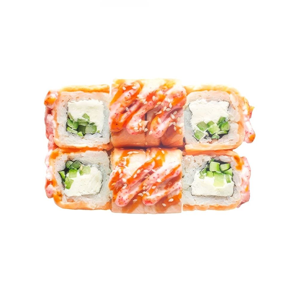 Норвежский лосось, сыр cremette, огурец и фирменный соус (1 порция = 8 шт)