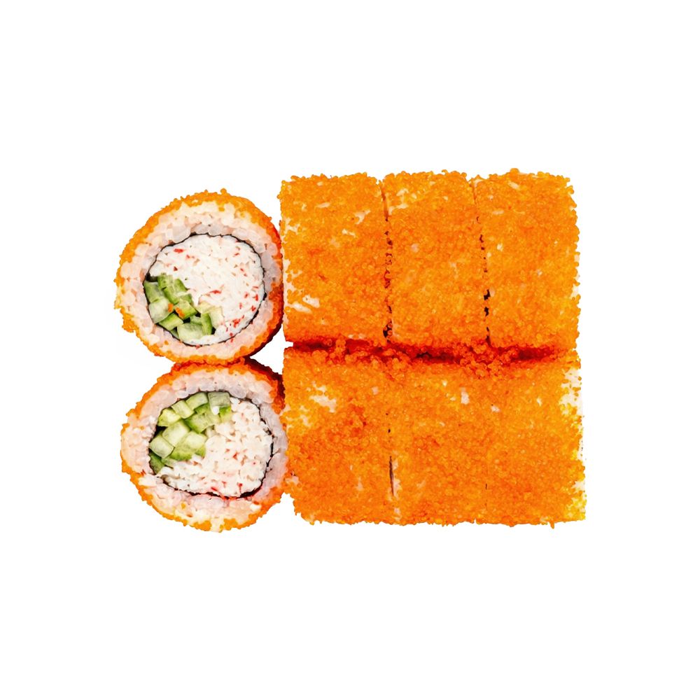 Мясо краба, огурец и икра тобико (1 порция = 8 шт)