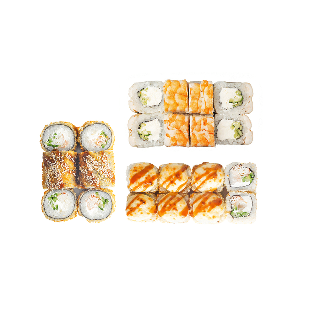 *Только на доставку и самовывоз Фила с креветкой, Банзай и Кани темпура 3 соевого соуса,2 вассаби,2 имбиря