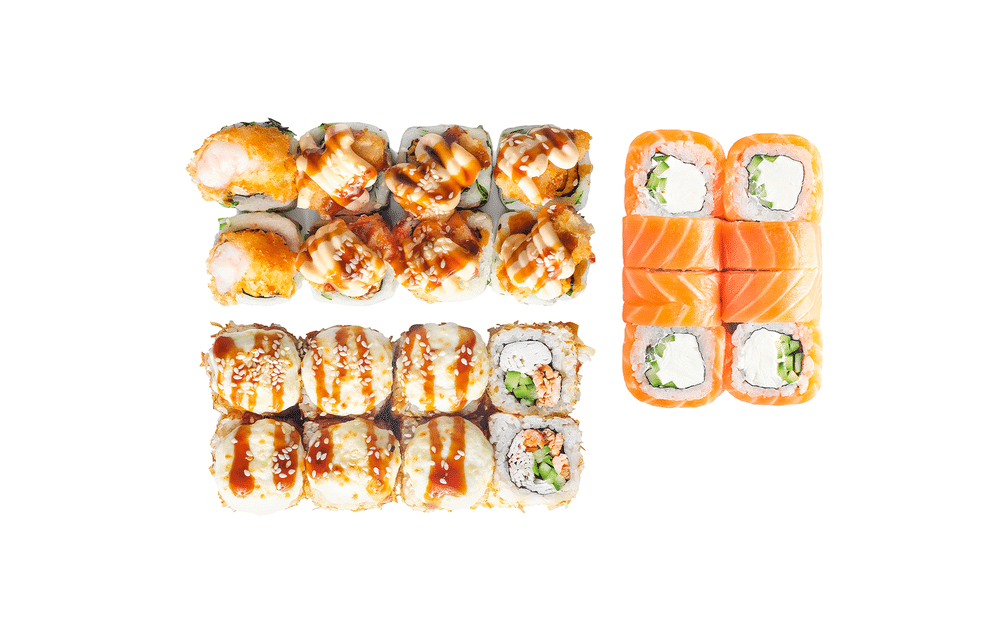 *Только на доставку и самовывозФиладельфия с огурцом,Асакуро ролл и Киллер ролл 3 соевого соуса,2 вассаби,2 имбиря