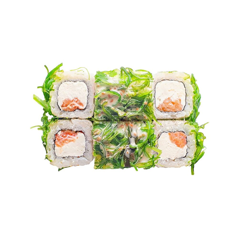Норвежский лосось,сыр cremette, водоросли чука (1 порция=8шт)