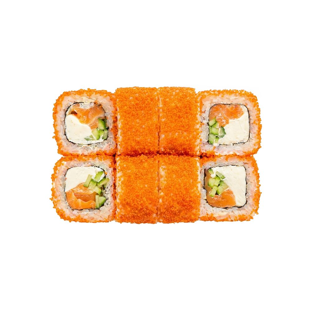 Норвежский лосось, икра тобико, сыр cremette и огурец (1 порция = 8 шт)